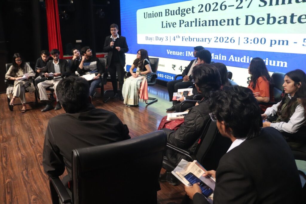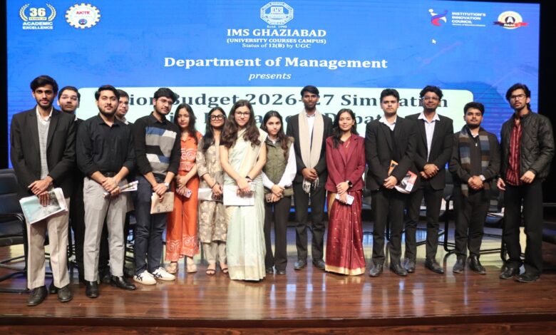 आईएमएस यूनिवर्सिटी कोर्सेज कैंपस में 4 फरवरी, 2026 को डिपार्टमेंट ऑफ मैनेजमेंट द्वारा यूनियन बजट 2026–27 पर आधारित एक प्रभावशाली एवं प्रतिभाशाली बजट सिमुलेशन कार्यक्रम का आयोजन किया गया। ‘लाइव संसद’ प्रारूप में आयोजित इस कार्यक्रम में 150 से अधिक शिक्षार्थियों ने उत्साहपूर्वक सहभागिता की। कार्यक्रम का मुख्य उद्देश्य छात्रों को वित्तीय प्रावधानों, विभिन्न मंत्रालयों के पोर्टफोलियो, नीति निर्माण की प्रक्रिया तथा समसामयिक आर्थिक मुद्दों की व्यावहारिक समझ प्रदान करना था।