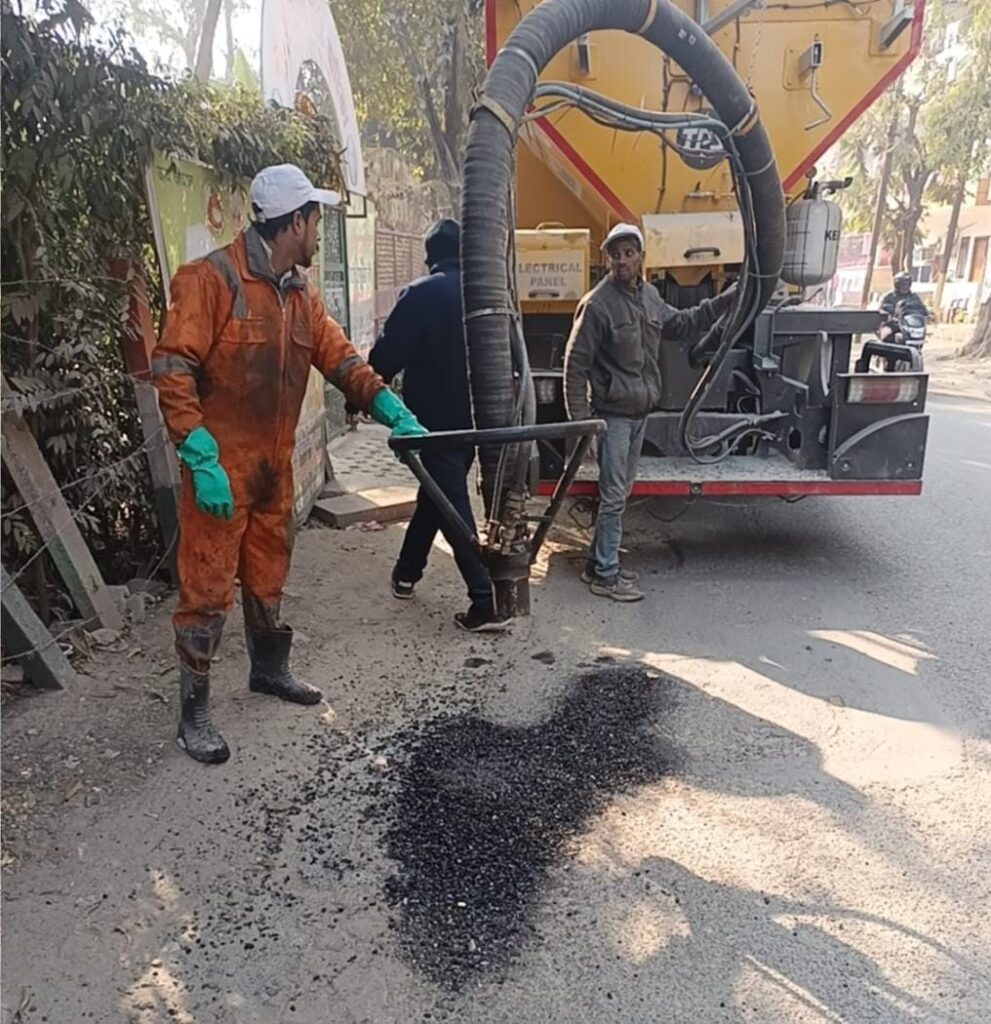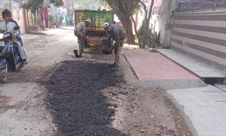चुन-चुन कर सड़कों के गड्ढों को भरने के लिए निगम चला रहा है अभियान, जीएसबी और रेडी मिक्स मटेरियल का किया जा रहा है इस्तेमाल