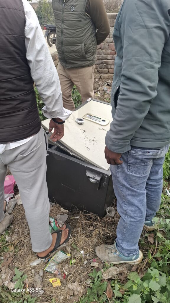 खाली प्लाट में चुराई तिजोरी को तोड़ रहे थे बदमाश चाैकीदार को देखकर हुए फरार