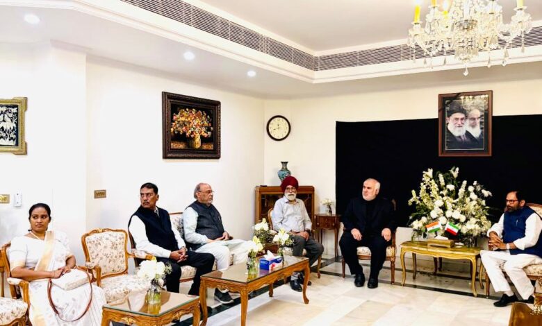 नई दिल्ली- पूर्व केंद्रीय मंत्री मुख्तार अब्बास नकवी द्वारा आज नई दिल्ली में ईरान इस्लामी गणराज्य के दूतावास पहुँच कर ईरान के राजदूत H.E. डॉ. मोहम्मद फथली से मुलाकात कर सुप्रीम लीडर एवं महान आध्यात्मिक शख्सियत आयतुल्लाह अली खामेनई जी की शहादत पर अपनी भावभीनी श्रद्धांजलि अर्पित की। उन्होंने कहा कि जंग समस्या का समाधान नहीं बल्कि खुद समस्या है। अमन इंसानियत की हिफाजत के लिए जरुरी है कि संकट के समुद्र से अमन का अमृत निकले, यही प्रार्थना है