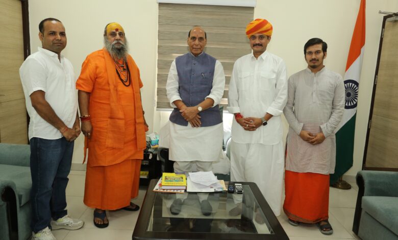 पिंटू सुथार मीडिया प्रभारी दुधेश्वरनाथ मंदिर ने बताया कि इसी क्रम में देश के रक्षा मंत्री राजनाथ सिंह से उनके आवास पर शिष्टाचार मुलाकात कर राष्ट्रहित, राष्ट्रीय सुरक्षा, जनकल्याण से जुड़े विषयों के साथ-साथ युवाओं की भागीदारी एवं डिफेंस एजुकेशन को लेकर भी सार्थक विचार-विमर्श किया गया।विराट संत सम्मेलन धार्मिक आस्था, सामाजिक समरसता एवं राष्ट्रीय एकता का सशक्त प्रतीक बनकर उभरा। संतों के पावन सानिध्य एवं मार्गदर्शन से समाज में सकारात्मक ऊर्जा का संचार हुआ तथा जनमानस को धर्म, सेवा और राष्ट्रहित के मार्ग पर अग्रसर होने की प्रेरणा प्राप्त हुई।