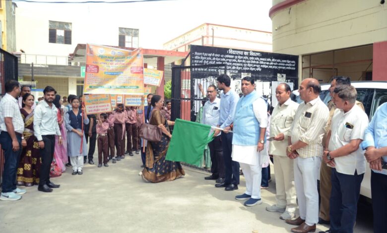 अंत में स्कूल चलो अभियान के स्लोगन की तख्तियां हाथ में लेकर जनजागरण के नारे लगाते हुए एक विशाल रैली निकल गई जिसे विधायक संजीव शर्मा जी एवं मुख्य विकास अधिकारी ने संयुक्त रूप से हरी झंडी दिखाकर रवाना किया। जिला विद्यालय निरीक्षक धर्मेंद्र शर्मा जी ने सभी का धन्यवाद ज्ञापित किया। इस अवसर पर राजकीय बालिका इंटर कॉलेज की प्राचार्य श्रीमती विभा चौहान, खंड शिक्षा अधिकारी डॉ अभिषेक यादव, वित्त एवं लेखाधिकारी विकास बघेल,जिला समन्वयक डॉ0 राकेश एवं अनुभव गुप्ता, तनुजा शर्मा, नीरज खटाना, नीतू, योगेंद्र, अनिल कुमार, राजपाल एवं बड़ी संख्या में छात्र-छात्राएं उपस्थित रहे। कार्यक्रम का संचालन एसआरजी पूनम शर्मा द्वारा किया गया