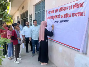 बुलंदशहर {मनस्वी वाणी}नारी शक्ति वंदन अधिनियम के समर्थन में ‘धन्यवाद मोदी’ हस्ताक्षर कार्यक्रम का आयोजन किया गया। यह अभियान भाजपा महिला मोर्चा और भाजपा युवा मोर्चा के पदाधिकारियों द्वारा विभिन्न शिक्षण संस्थानों में व्यापक जनसंपर्क के साथ चलाया गया।यह अभियान डी.ए.वी. पीजी कॉलेज, मुस्लिम गर्ल्स इंटर कॉलेज, आईपी कॉलेज प्रथम परिसर, गौरी शंकर कन्या महाविद्यालय और आईपी कॉलेज द्वितीय परिसर में आयोजित हुआ। इन स्थानों पर बड़ी संख्या में महिलाओं ने उत्साहपूर्वक भाग लेकर हस्ताक्षर किए।महिलाओं ने प्रधानमंत्री नरेंद्र मोदी द्वारा महिलाओं को आरक्षण और सम्मान प्रदान करने के इस ऐतिहासिक निर्णय के प्रति अपना समर्थन और आभार व्यक्त किया। कार्यक्रम के दौरान महिलाओं में विशेष उत्साह देखा गया और उन्होंने अभियान में सक्रिय सहभागिता सुनिश्चित की।इस अवसर पर कार्यक्रम संयोजक भाजपा युवा मोर्चा के जिला महामंत्री कृष्णपाल सिंह, कल्पना वर्मा, पूजा गुप्ता, ललित दक्ष, रवि पाल, प्रशांत, रवि लोधी, विकास लोधी, हेमंत और मुनेश कुमार सहित अन्य पदाधिकारी उपस्थित रहे। उन्होंने कार्यक्रम को सफल बनाने में महत्वपूर्ण भूमिका निभाई।